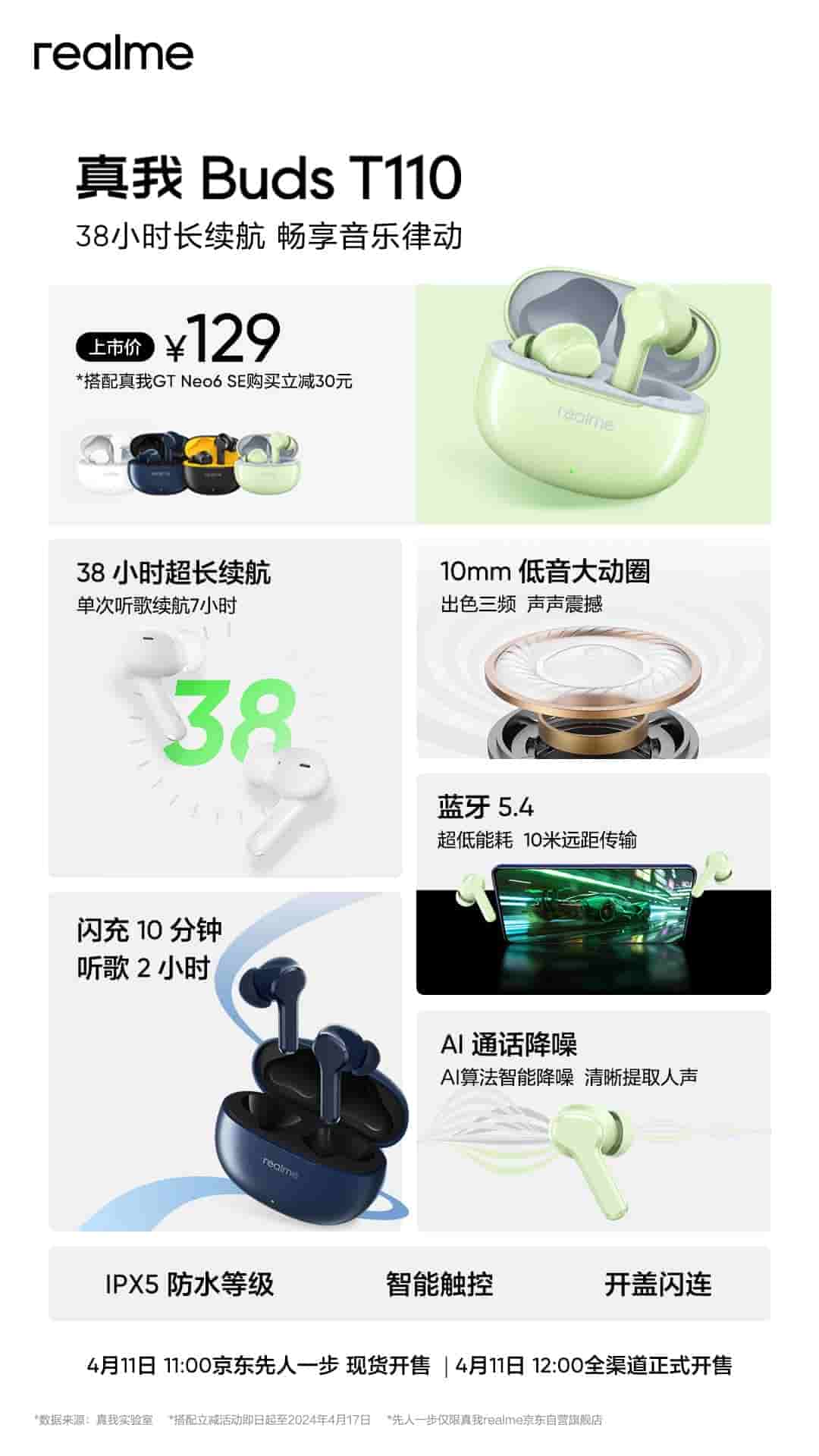 As announced earlier, Realme Buds T110 and Realme GT Neo 6 SE has been officially launched in the Chinese market. These earbuds have already made their debut in Malaysia and starting today the consumers in China can also purchase these earbuds. Let’s take a look at the pricing and specifications of these newly launched earbuds and smartphones.