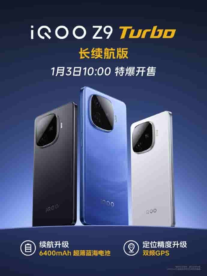Till now the launch date was a mystery, but today iQOO has officially announced that iQOO Z9 Turbo Endurance Edition will go on sale in China on 3rd January at 10:00 (local time in China).