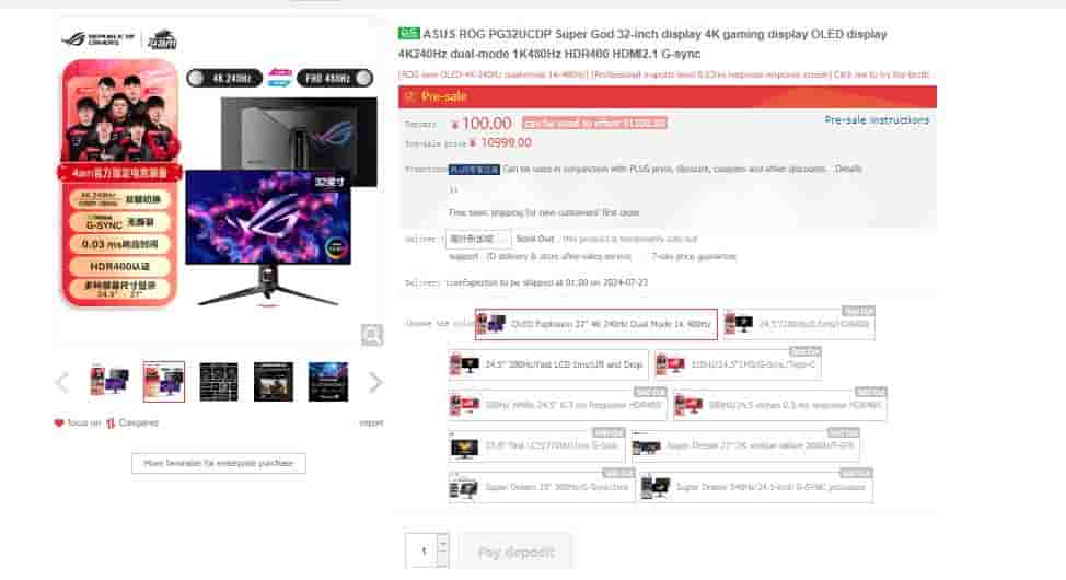 The SWIFT OLED 32 Pro PG32UCDP gaming monitor is currently available for pre-order on JD.com for 100 yuan. Also, the pre-sale pricing has been listed as 10999.00 Yuan.