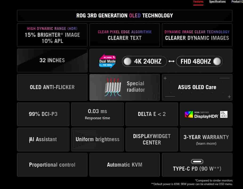 Specifications of SWIFT OLED 32 Pro PG32UCDP