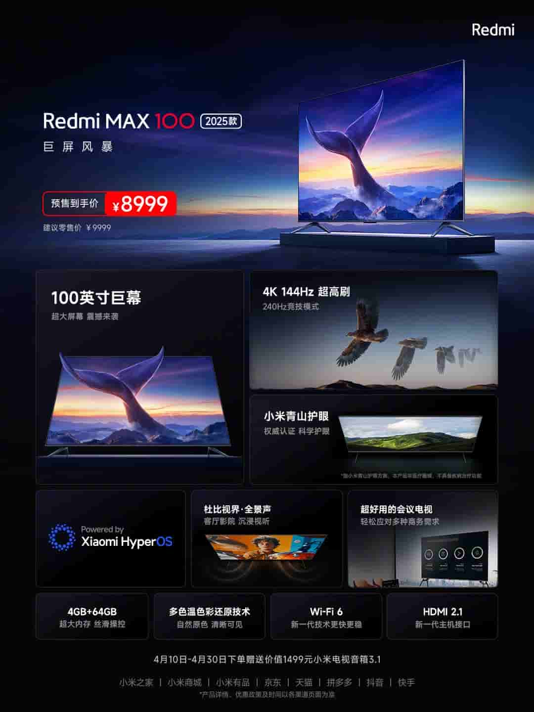 Redmi Max 100 2025 With 144Hz Refresh Rate And 4K Resolution Launched in China