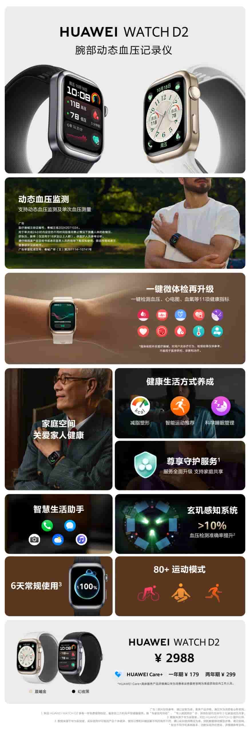 The Huawei Watch D2 is available in champagne gold and black color options, priced at 2988 Yuan ($420) in China. Huawei is offering its Care+ service plans alongside the device, with subscription options of 179 Yuan for six months and 299 Yuan for annual coverage. The Care+ service provides premium support and additional benefits for Watch D2 users.