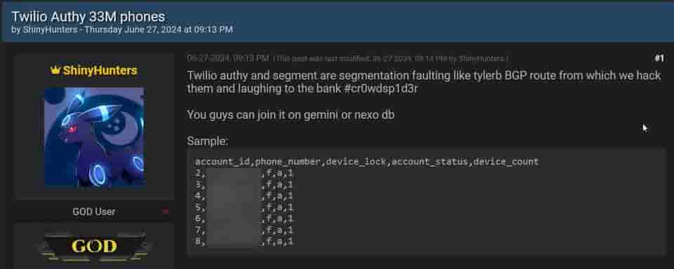 Bleeping Computer has shared a screenshot in their recent report which suggests that a threat actor named ShinyHunters has been linked to the breach as they leaked a file containing over 33 million Authy-linked phone numbers