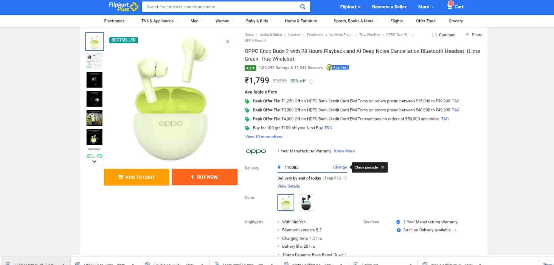 The Oppo Enco Buds 2 is available on Flipkart at an exciting 55 % offer on Flipkart. You can now buy the Oppo Enco Buds 2 for Rs 1,799.