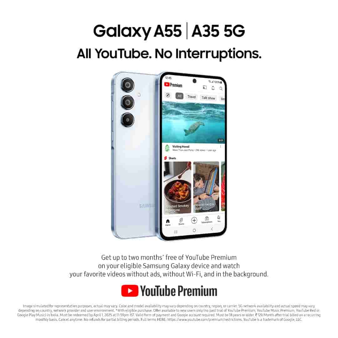 YouTube Premium Offer with Galaxy A35 5G and Galaxy A55 5G