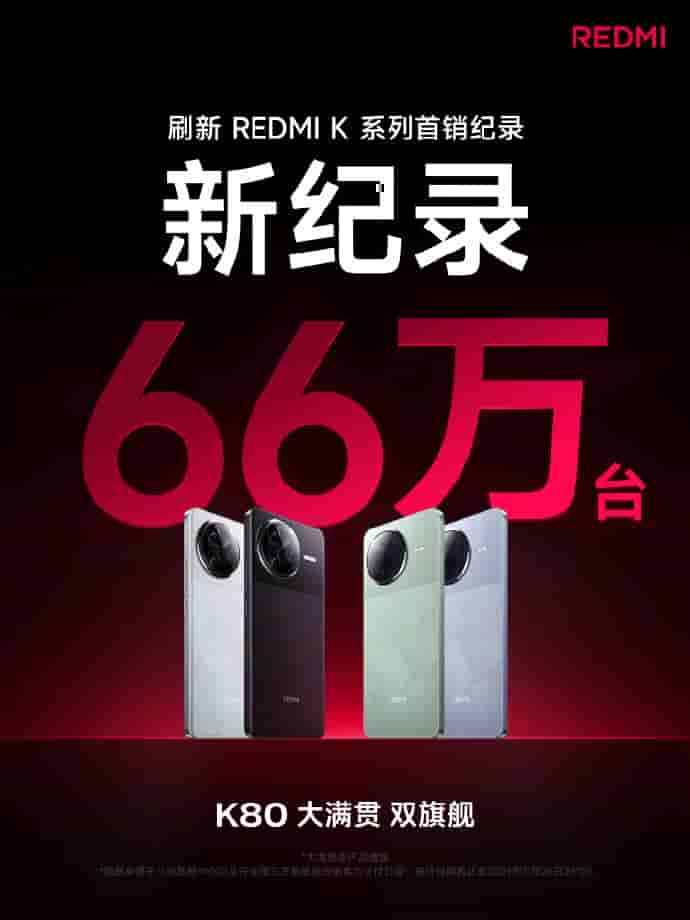 Redmi has now officially announced that this latest series has now refreshed the first sale record of the Redmi K series. As of the first day only, 660,000 units of the Redmi K80 series have been sold.