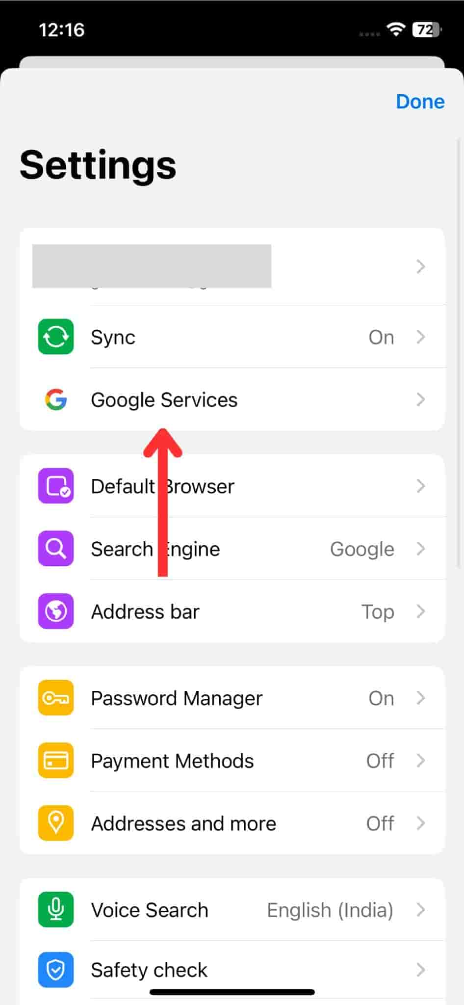 In your settings menu, click on Google Services