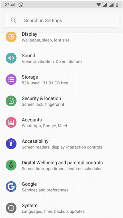 - Launch the Settings app and select Google.