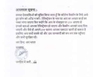Here you can see a notice for all giving strict warning not to tell any OTP over call for registration. The scammers have set the trap for innocent citizens. Their idea is to call them, ask them the OTP which they might have received on their phone for the sake of registration for corona vaccination, and in the meantime, you will find your bank account amounts 0 balance.