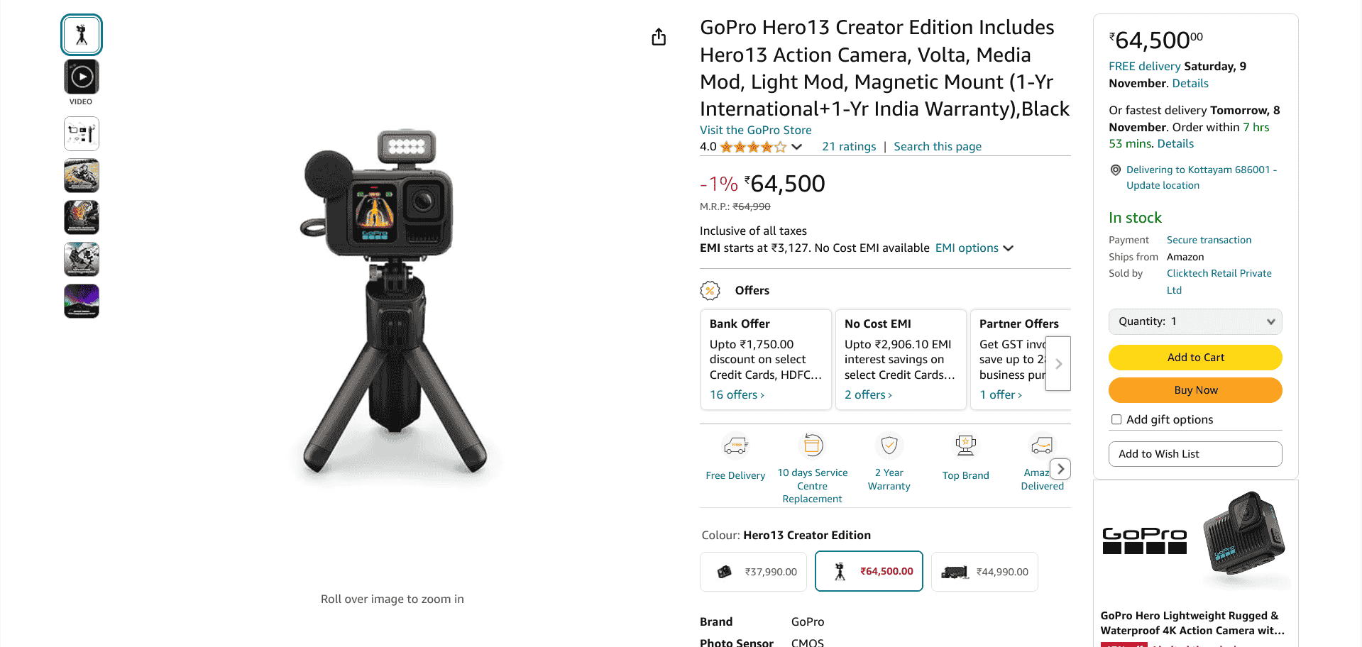 GoPro Hero 13 Black - Amazon Listing GoPro Hero 13 Special Bundle - Amazon Listing GoPro Hero 13 Creator Edition - Amazon Listing