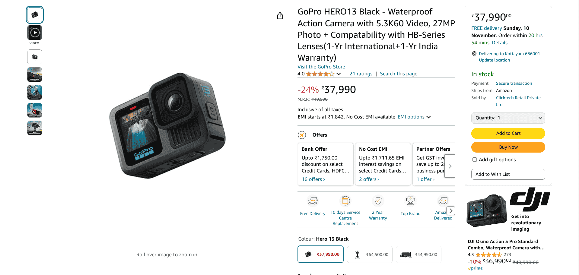 The GoPro Hero 13 Black along with the GoPro Hero 13 Special Bundle and GoPro Hero 13 Creator Edition were launched in India in September 2024, and were made available to Indian customers in the same month itself. Via the Amazon shopping platform of India, the three are now available at discounted prices starting from INR 37,990.