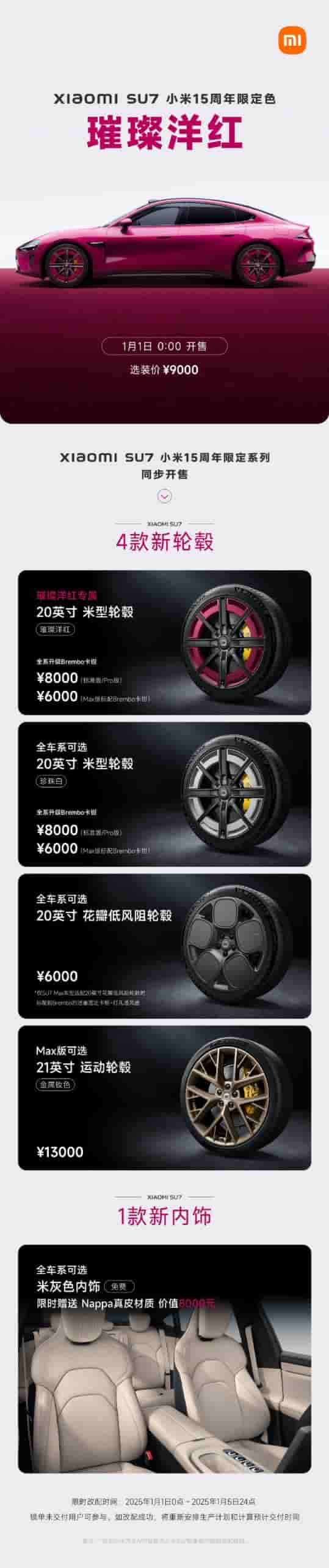 On the occasion of its anniversary, the company also introduces 4 new wheels for Xiaomi SU7 and one new interior.