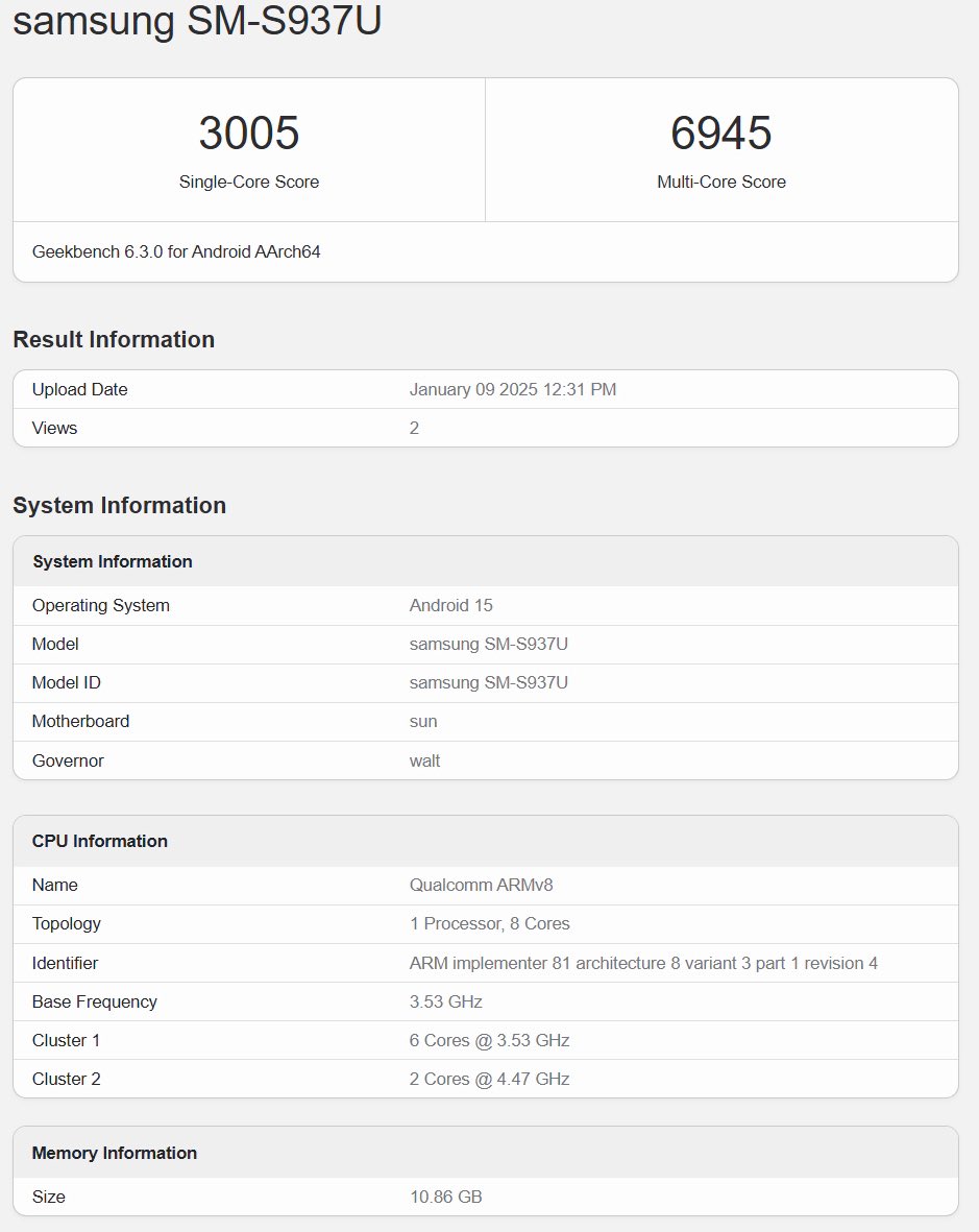 The prototype that ran on the database reveals Android 15 (Likely OneUI 7.0) out of the box and 10.86GB RAM, which will be marketed as 12GB RAM. Earlier, it was tipped that the entire Galaxy S25 Series line will start with 12GB RAM, and it looks like this is becoming a reality. Just to add, even the vanilla variant’s prototype which ran on Geekbench had a multicore score higher than 9000.